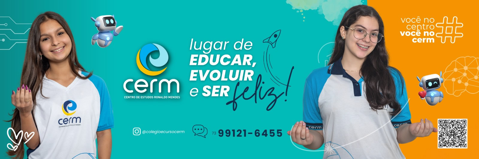 O Centro de Estudos Ronaldo Mendes (CERM) é uma escola voltada para o desenvolvimento do estudante do século XXI, conectada com as novas tendências de ensino e aprendizagem e, acima de tudo, com o jovem/adolescente dessa geração: criativo, engajado, interessado na construção de um mundo mais sustentável, empático, justo e humanizado. Uma escola que objetiva garantir a aprovação do estudante na vida pessoal, acadêmica e profissional, a partir da oferta de educação semi-integral, com aulas do currículo comum do Ensino Médio, e disciplinas diversificadas e eletivas que completam nossa proposta de ensino.